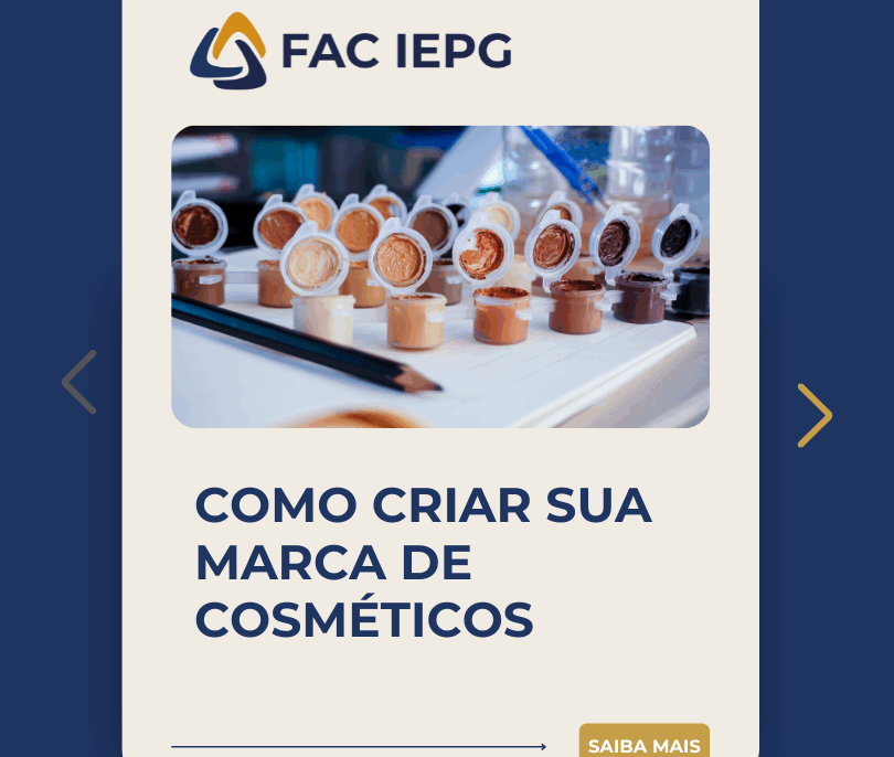 💡 Para quem deseja dominar essas etapas com segurança e embasamento técnico, a Pós-Graduação em Desenvolvimento de Produtos Cosméticos da FAC IEPG é uma excelente oportunidade. O curso oferece uma formação completa para quem quer atuar na criação, formulação e gestão de cosméticos inovadores.